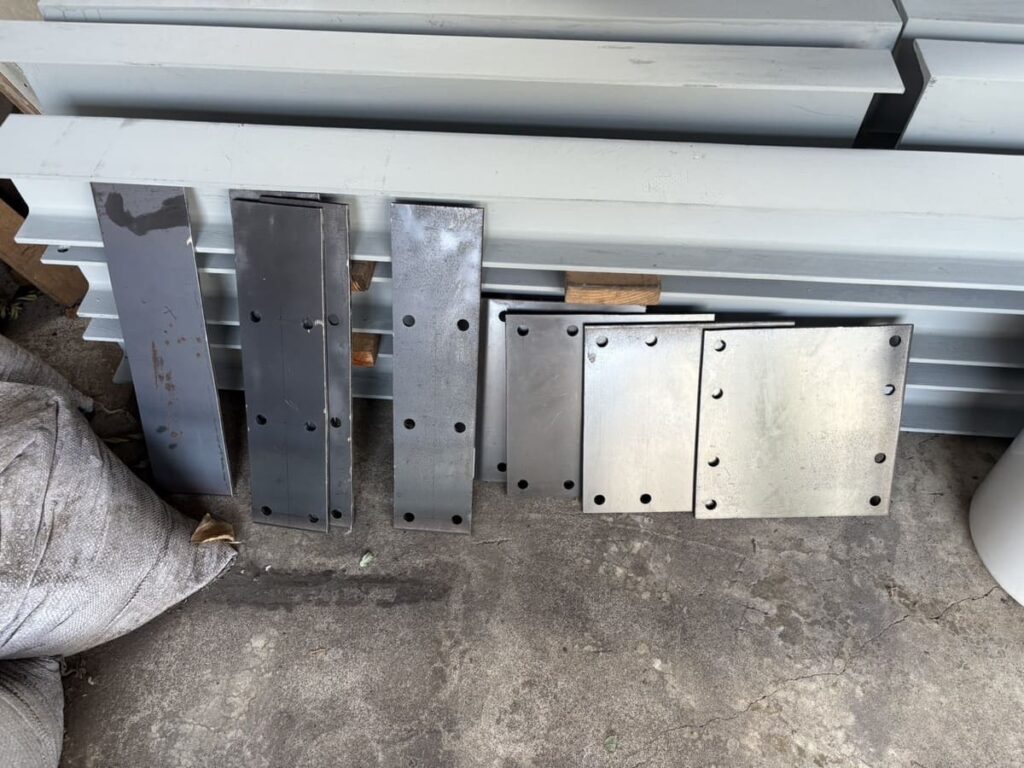 切り出した鉄板(プレート)にも正確に穴を開け、ボルトが通るか確認します。