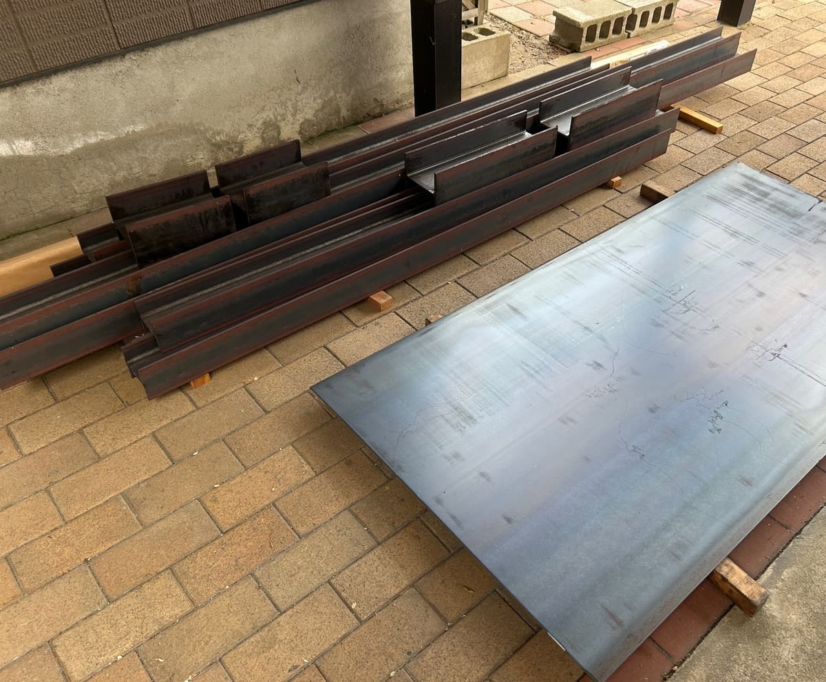 地元の鋼材屋さんから、材料となるH鋼と鉄板が届きました。