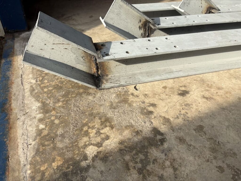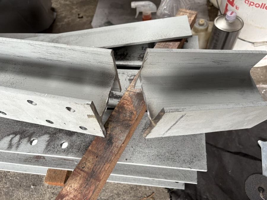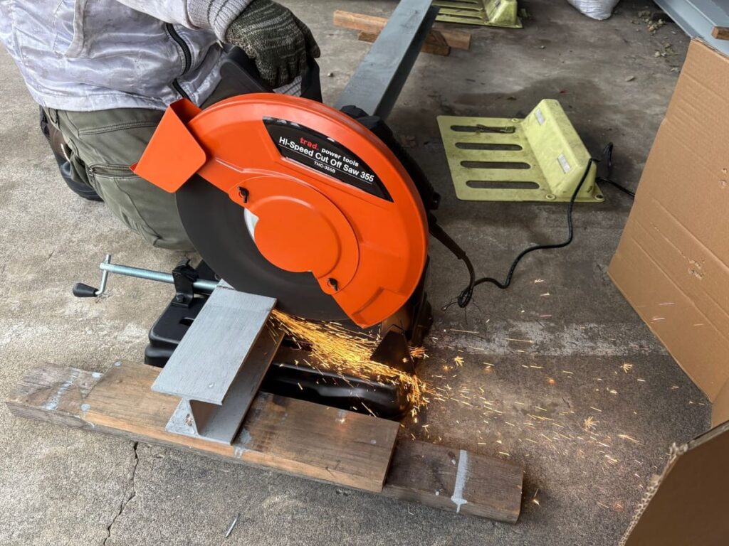 やはり専用工具は偉大です。 ディスクグラインダーで苦戦していたH鋼が、バターのようにスパッと切れます。 断面も垂直で、合わせ目もピタリ。 これでようやく、胸を張って次の「溶接工程」に進めます。