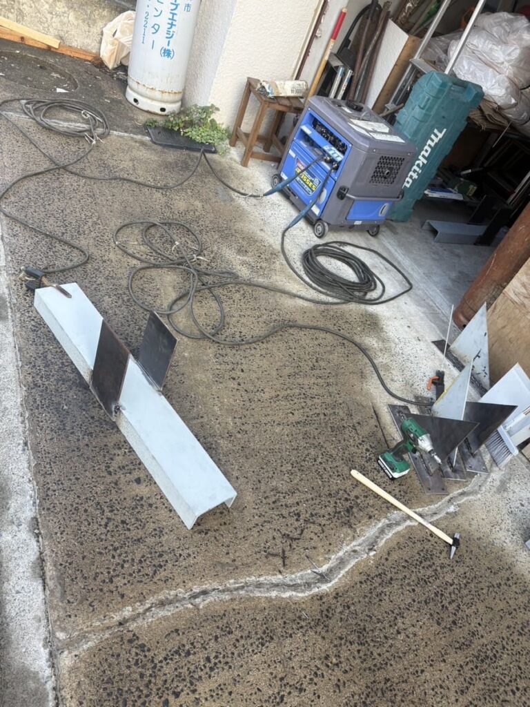 今回は、H鋼を切り刻み、火花を散らして溶接し、自宅で仮組みを行う「製造編」です!