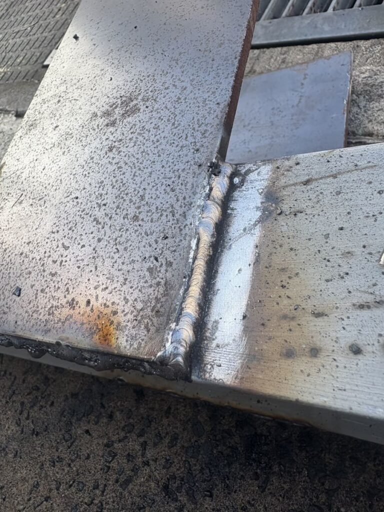 バチバチと火花を散らしながら、分厚い鉄板同士を溶接。 久しぶりのアーク溶接ですが、ガッチリと溶け込んでくれました。 これなら28フィートの重量にも耐えられるはず!