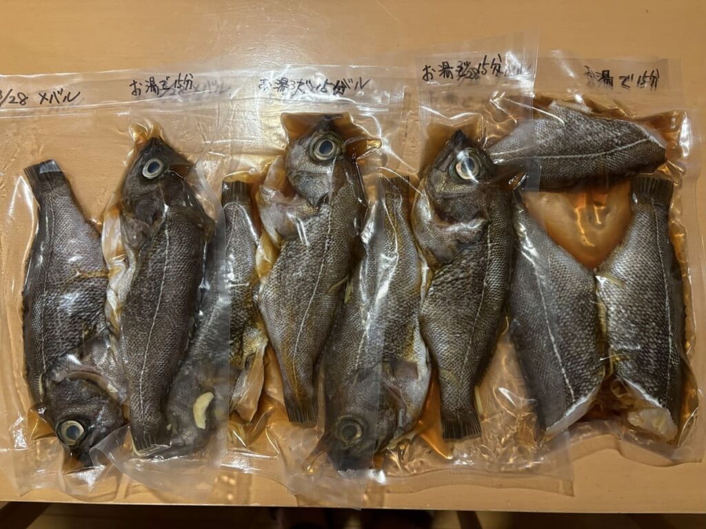特大マゾイに、数え切れないほどの良型〜尺シロメバル、そして丸々と太ったアイナメ。これを数日で食べ切るのは不可能です。 そこで今回は、これらすべてを「解凍するだけ」「湯煎するだけ」で高級料亭の味が楽しめる『無添加・冷凍ミールキット』に加工していきます!