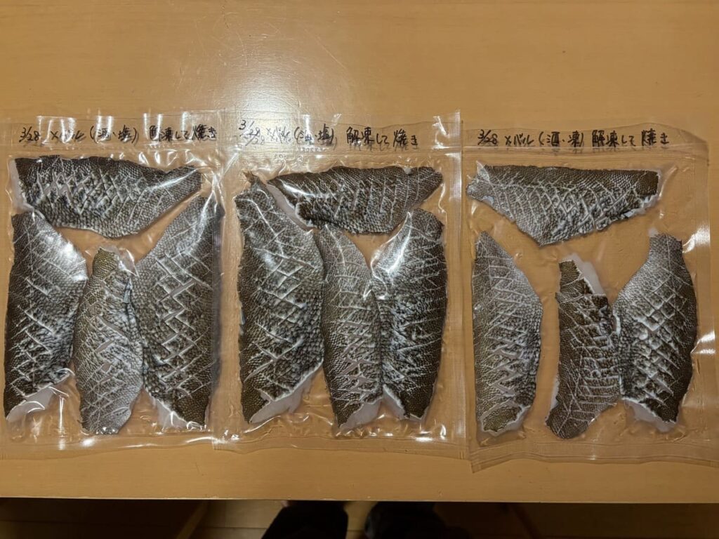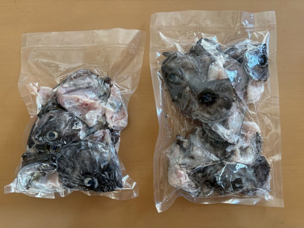 根魚のヒレやエラのトゲは凶器です。そのまま真空パックすると、見えないレベルの小さな穴(ピンホール)が開き、後日見ると空気が入って霜だらけ…なんてことに。(※前回私がやった失敗です笑)