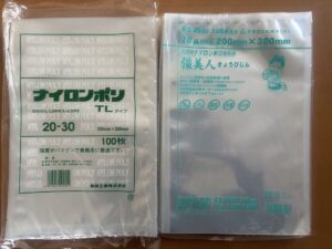 - 右:クリロン化成「彊美人(きょうびじん)」 透明度が抜群で手触りがしなやか。切り身のパックには最高ですが、柔軟すぎるためか、アラの骨の鋭さに負けてしまい、わずかに空気が入って失敗(真空漏れ)してしまいました。