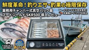 ちなみに船長はコスパ最強の横長モデル『SKR500』を愛用していますが、お刺身用の長いサクなどを切らずにそのままパックしたい方には、縦長ボディの『真空パックんシェフ3plus』もかなりオススメです!