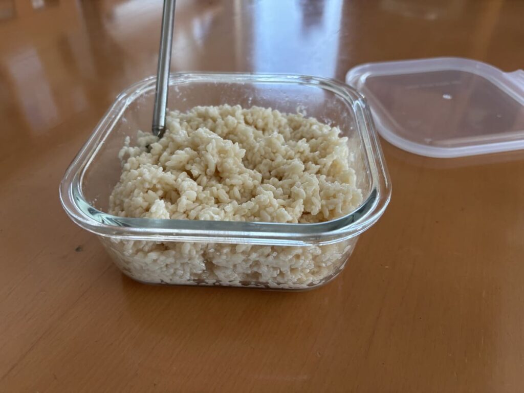 約12日後。お米のデンプンが完全に分解され、指で簡単につぶれるほどトロトロになり、バナナや栗のような甘くフルーティーな香りが漂ってきたら完成のサイン。ここからは冷蔵庫に入れて、最高の発酵状態で時を止めます。