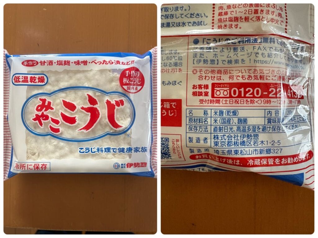 冷凍庫で眠っていたマゾイの純白パックと、完成したばかりの自家製塩麹。