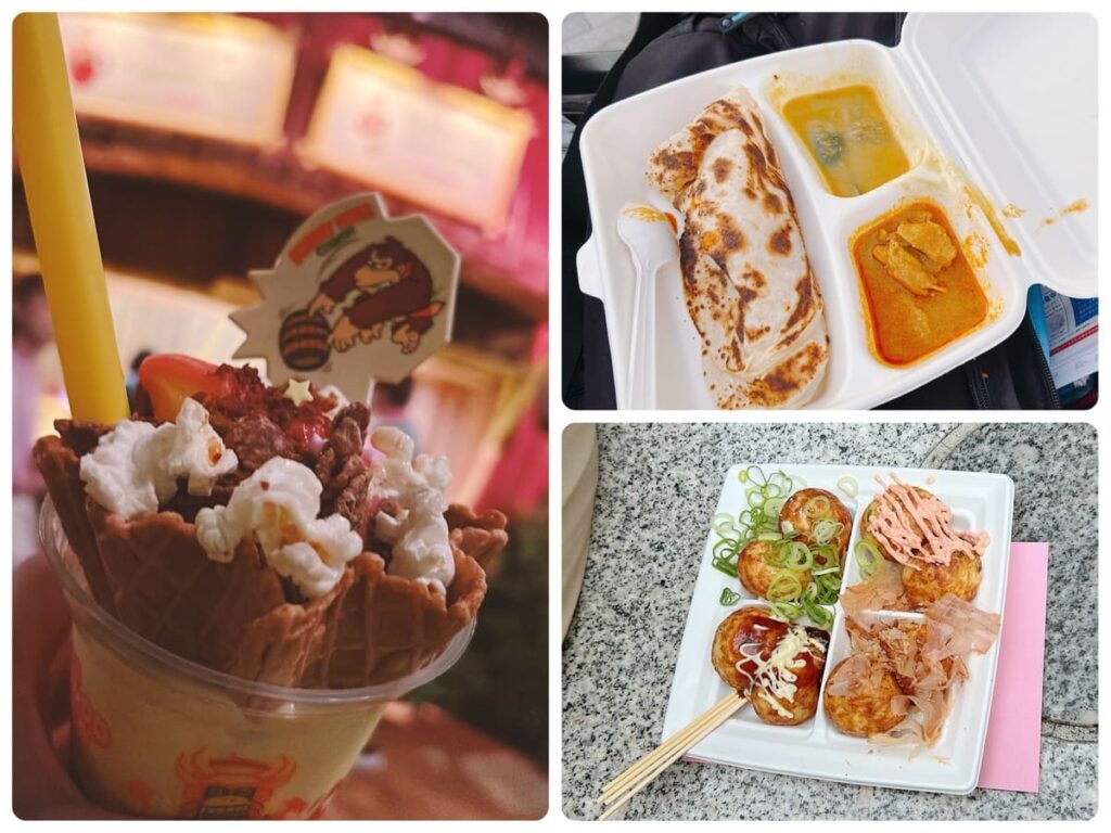 ソースの香ばしい匂い、ふわふわの生地、甘いお菓子…。 数ヶ月ぶりの「禁断の味」は、脳が震えるほど美味しかったです。 腰への影響? それは帰ってから考えます!